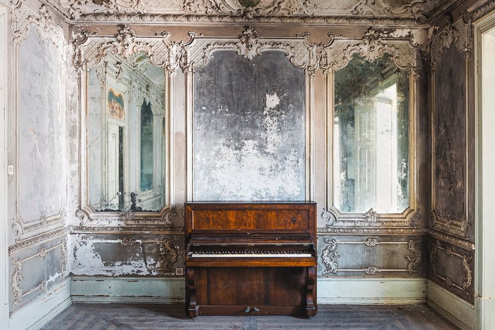 This upright piano stands still in a dilapidated drawing room on the first floor of an abandoned Portuguese villa. Its cracked mirrors, faded ceiling and dusty floor tell a story of long-forgotten grandeur. Yet something about this scene feels alive - as if the music never really left.
