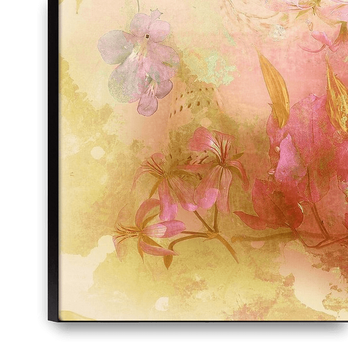 Picturesque flowers such as bougainvillea, mimosa, geranium, with soft dreamy tones . Easy to fit into the room because of the soft shades.