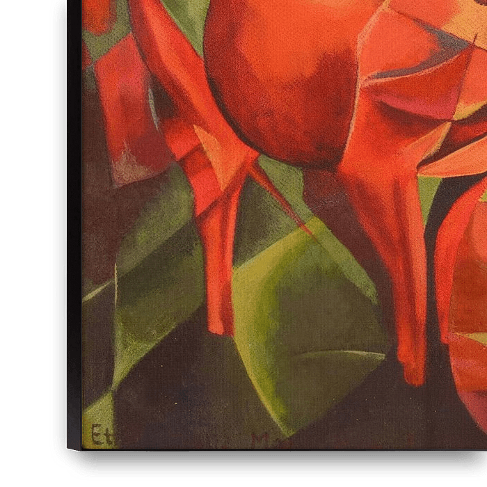 Franz Marc was a German painter known for his expressionist style. His work "Pigs" is a good example of his style and shows a group of pigs running around in a meadow. The pigs are depicted in bright and expressive colours, making it a powerful and emotional work. Marc used his paintings to show his vision of nature, and in "Pigs" he shows how he saw the freedom and wildness of animals. It is an impressive work that shows the power of expressionist art.