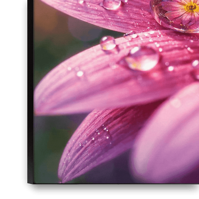 Buy this digital art artwork Pink Daisy Dew Drop Macro Flower Art by Dodik Hariyono as a reproduction on canvas, ArtFrame, poster and wallpaper, printed on demand in high quality.
