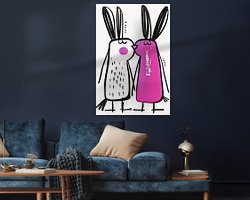 Details: rabbits, white, pink, animal, minimalist, modern, affection, stylised, black, art
