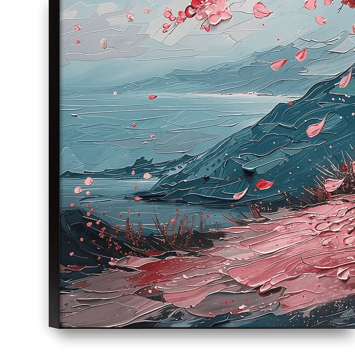 Add a touch of serenity and natural beauty to your interior with this Pink Blossom Painting - an artwork that captures the soothing splendour of a blossoming cherry blossom tree in a peaceful landscape.