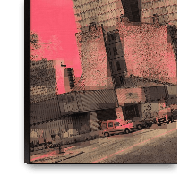 Contraste architectural dans un quartier de Marseille. Fusion d'images et traitement chromatique. Effet mosaïque ajouté.