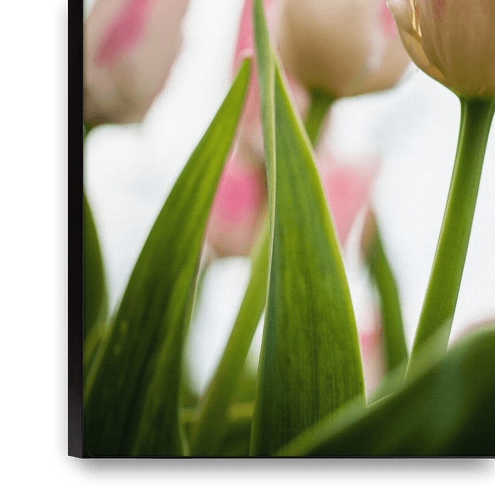 Buy this flower art Pink and white flowering tulip with serrations by Simone Janssen on canvas, ArtFrame, poster and wallpaper, printed on demand in high quality.