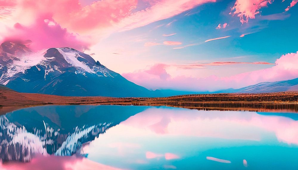 Buy this landscape artwork Pink clouds with landscape by Mustafa Kurnaz on canvas, ArtFrame, poster and wallpaper, printed on demand in high quality.