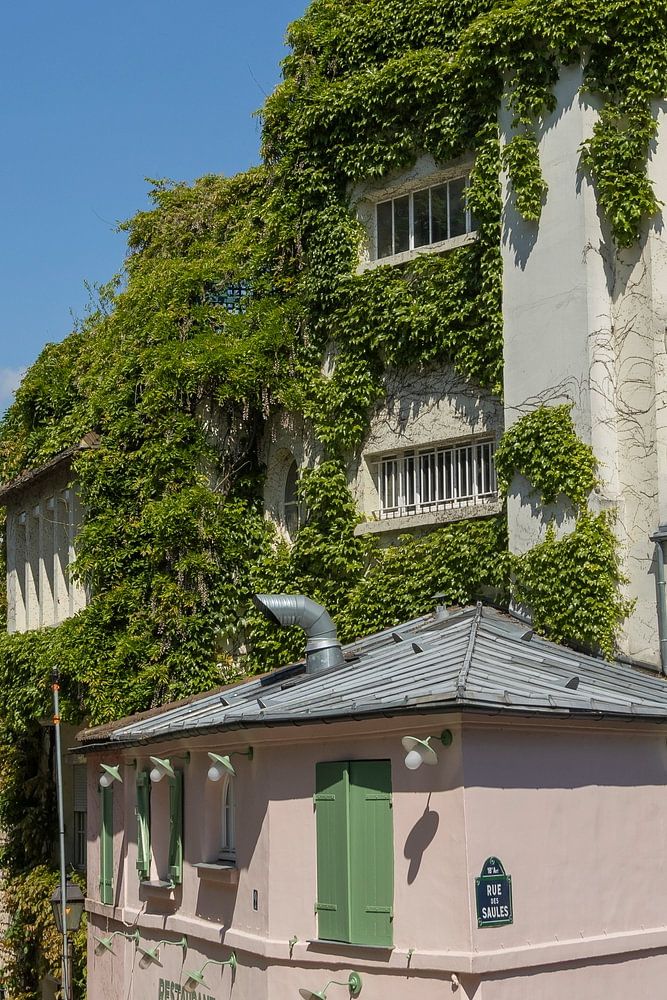 "La maison rose" is a French restaurant that has been open since 1920 and is very photogenic, with its pink façade, green window frames and matching French shutters.