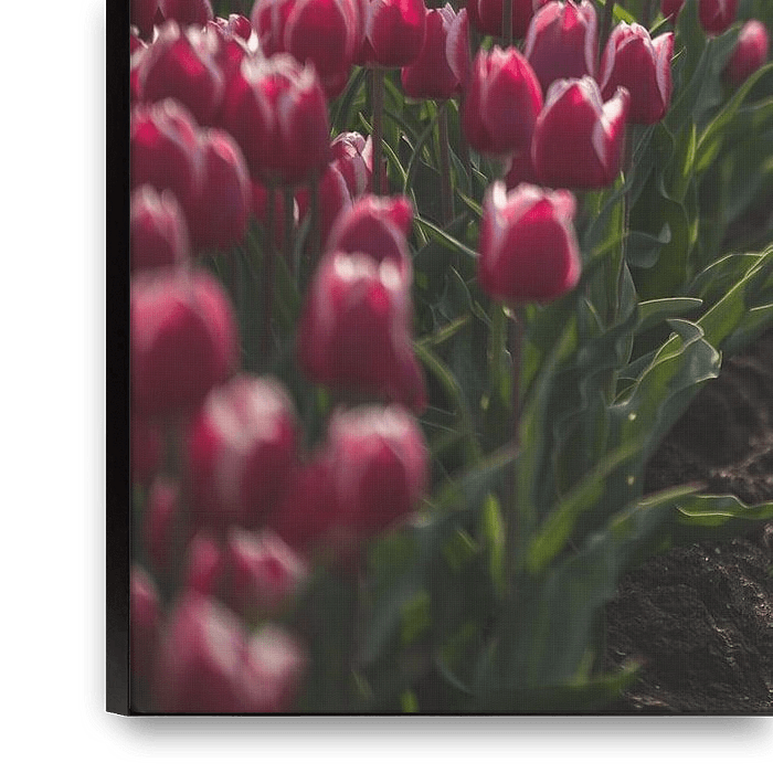 Buy the photo Pink tulips in the Flevopolder by Marjolijn Barten on canvas, ArtFrame, poster and wallpaper, printed on demand in high quality.