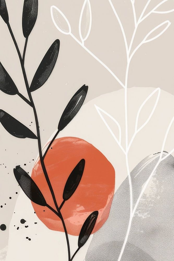 This artistic still life shows a harmonious composition of delicate plant shapes and abstract geometric elements. The minimalist lines and gentle colour gradients combine to create a calming overall impression. Perfect for lovers of abstract art and minimalist art. The warm earthy tones give the picture a natural and relaxed atmosphere that is ideal for modern living spaces.