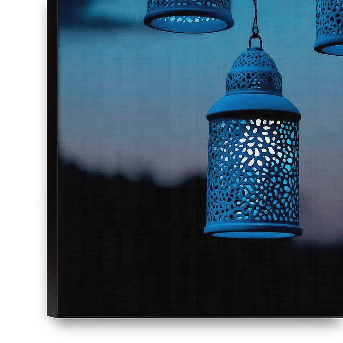 Soft, shimmering lights dance in the twilight, while filigree lanterns cast mysterious patterns on the surroundings. Their cool radiance sets the room in a magical mood and invites you to linger. Ideal for the living room, this enchanting lighting creates a cosy, relaxing atmosphere that invites you to dream.