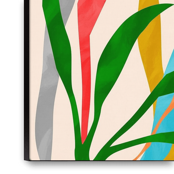 Buy this abstract artwork Playful Tropical Leaf Abstract by Georgia Chagas on canvas, ArtFrame, poster and wallpaper, printed on demand in high quality.