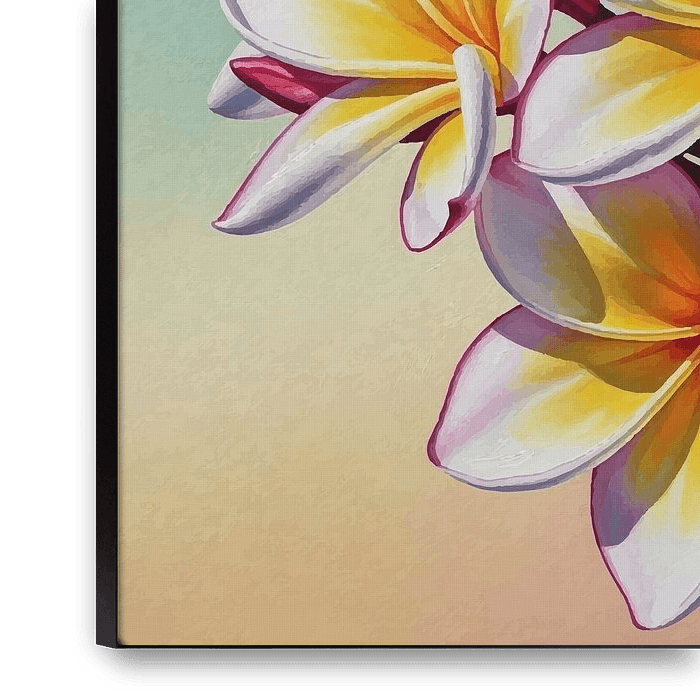 A radiant cluster of tropical plumeria flowers in warm sunset tones. A vibrant botanical artwork that celebrates tropical beauty and warmth