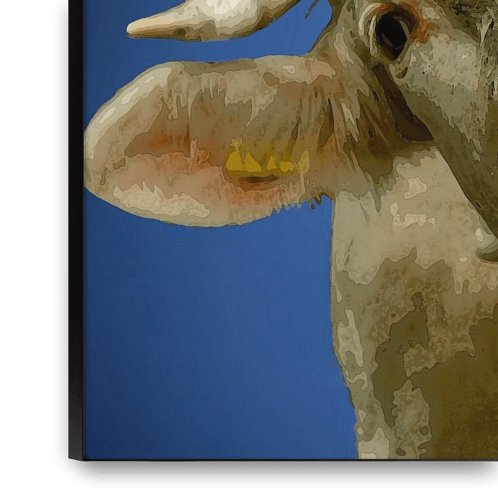 Buy this cow art Pop art in Blue. Cow. by Alie Ekkelenkamp on canvas, ArtFrame, poster and wallpaper, printed on demand in high quality.