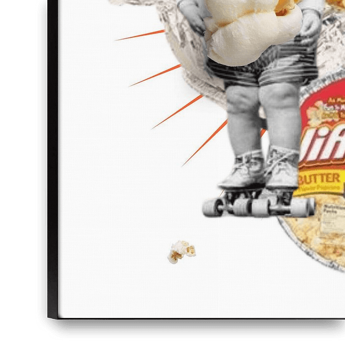 Bring a touch, nostalgia and colour to your interior with this unique artwork "Popcorn Moment." This vibrant collage captures a cheerful mood, perfect for any room.