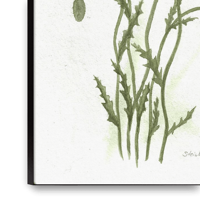 This delicate watercolour painting shows poppies with their beautiful red flowers