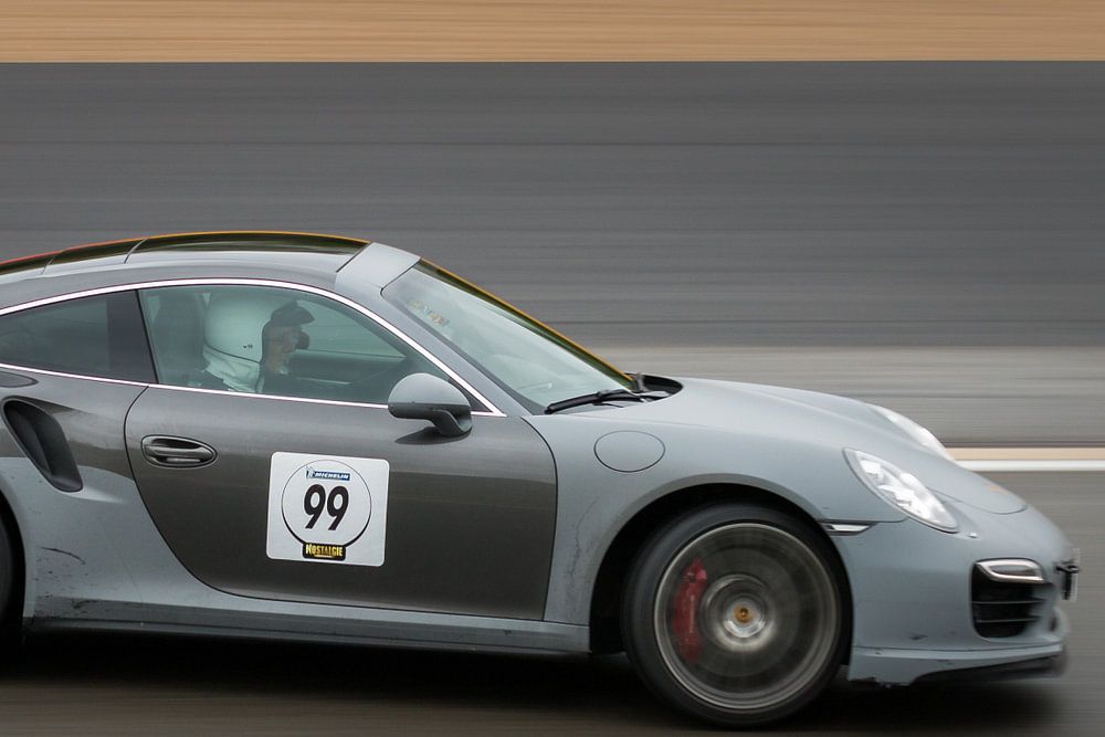 Floating Porsche 911 Carrera Turbo (built in 2014) at Circuit Spa-Francorchamps by Bruxelles. Due to the technique used, the speed of the picture splashes.