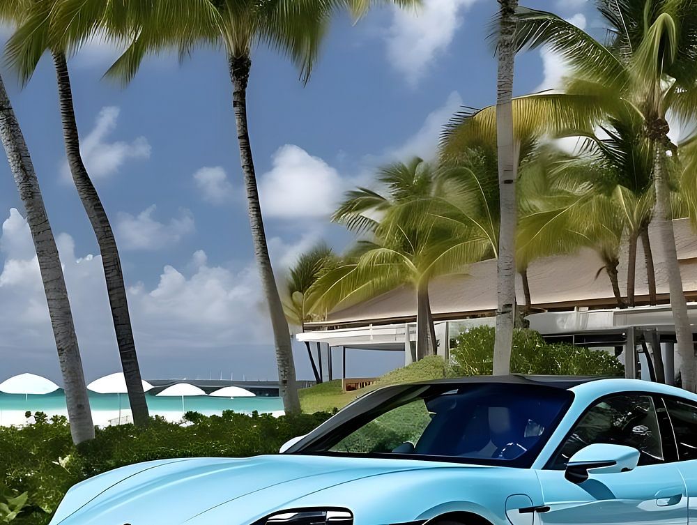 Captured like a breathtaking picture on the wall, the Porsche Taycan exudes the essence of modern sporty elegance. The Taycan's deep, glossy paint captures the light in a way that accentuates the clean lines and aerodynamic shapes of this electric sports car. The iconic Porsche emblem adorns the front, with the design striking the perfect balance between power and finesse.
