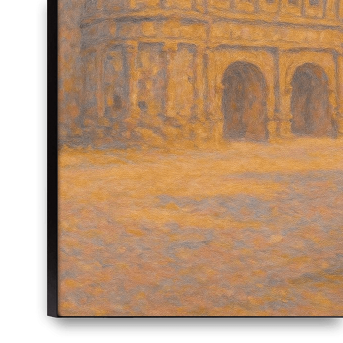 This impressionist rendering of the Porta Nigra transforms Trier’s ancient Roman gate into a glowing monument of light and color. Soft afternoon hues wrap the massive stone structure in unexpected warmth, turning its historically rugged surfaces into gentle blends of peach, gold, lavender, and muted blue. The result is a scene that…