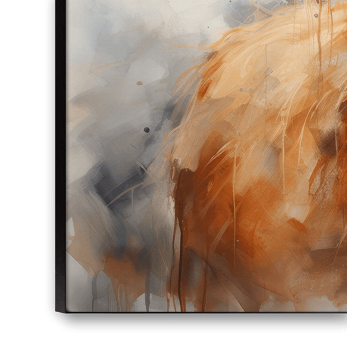 This beautiful fine art piece depicts a Scottish Highlander in soft orange tones, creating an atmosphere of warmth and tranquillity. The majestic look of the Highlander has been captured with attention to detail and precision. This artwork fits perfectly into rural, rustic or naturally inspired interiors. The light and orange tones evoke a sense of serenity and bring in the charm of the Scottish countryside.For questions, feel free to get in touch!