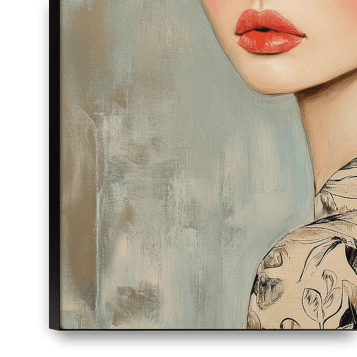 Portrait in pastel colours, illustration. Totally on trend and exclusive to Werk aan de Muur. Can this cheerful lady brighten up your wall?