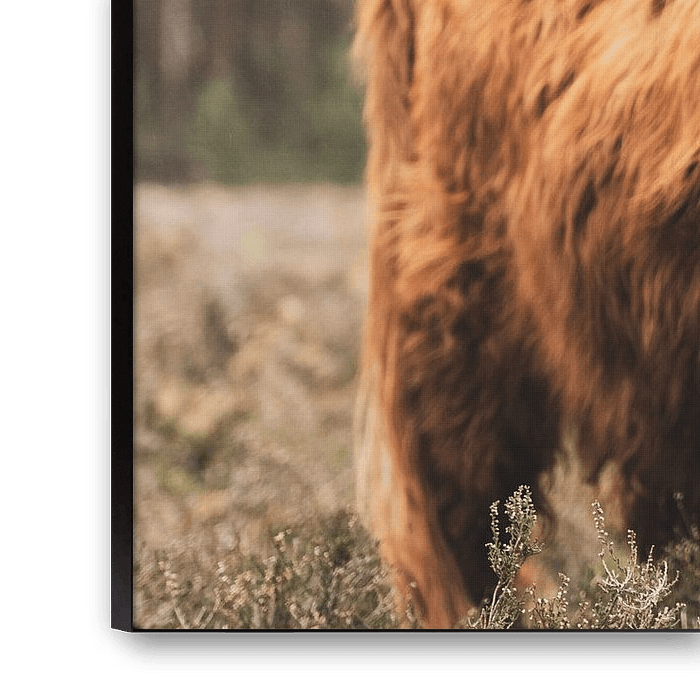 Portrait of a Scottish Highland cattle. The Scottish Highlanders are used in the nature conservation of the Veluwe to ensure that heather areas do not grow densely. The Highlander grazes undisturbed during a rain shower.