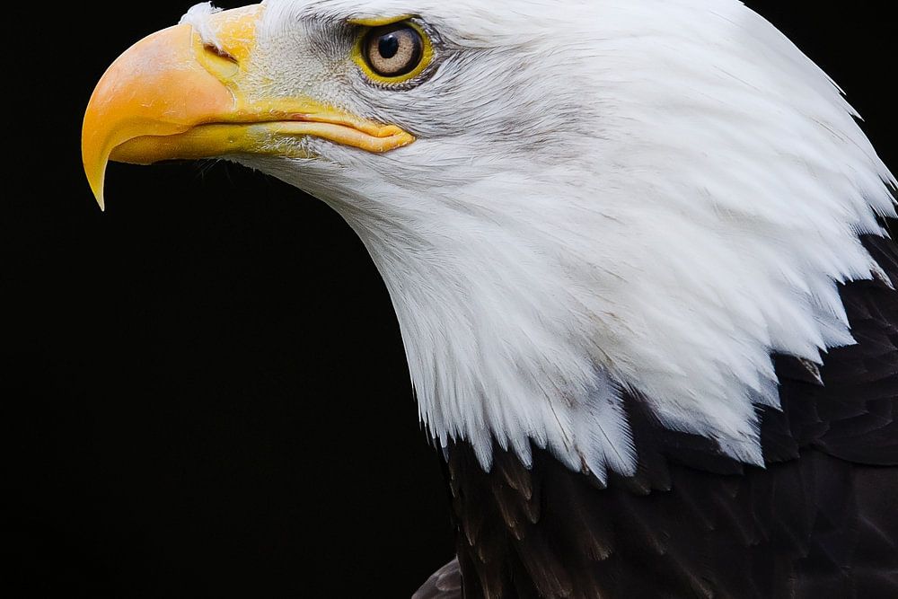 Profile portrait of a sea eagle a beautiful and powerful bird of prey against a black background