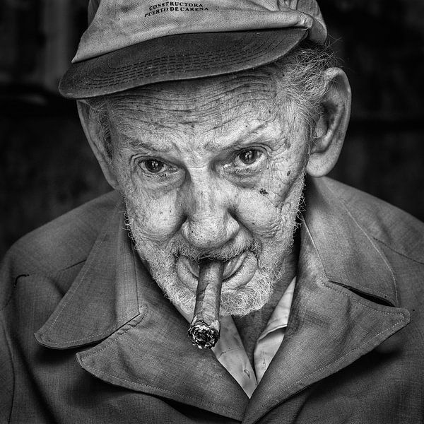 Photo's of lived-in faces of people I encountered on the streets of various countries. When I approach people, I steep myself in front, explain that I would like to take a portrait of them and ask for permission. This portrait was taken in Cuba.