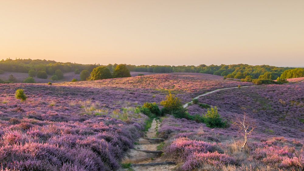 Sunrise on the Posbank in Rheden. The heather is in beautiful bloom.