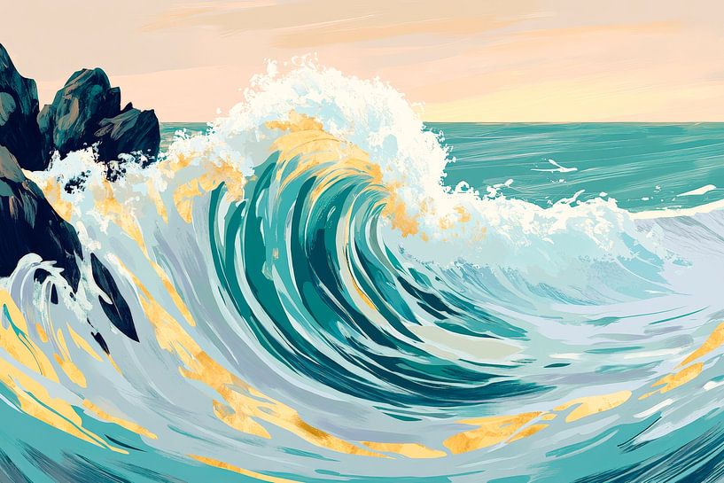 Buy this landscape artwork Powerful wave at sunset by Poster Art Shop on canvas, ArtFrame, poster and wallpaper, printed on demand in high quality.