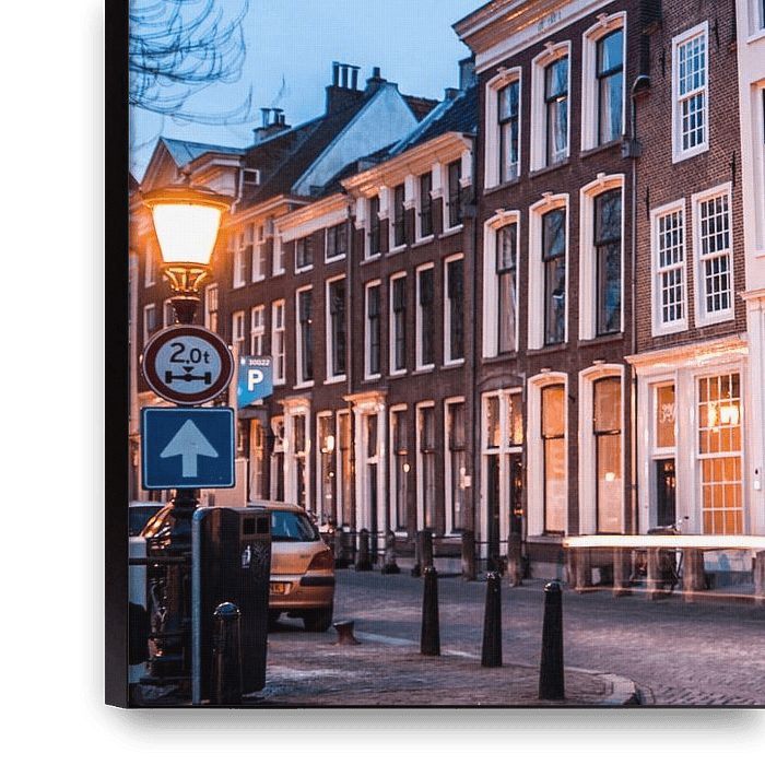 Deze prachtige foto toont een mooi sfeerbeeld van het historische centrum van Utrecht. De lichten in de huizen en cafe's zorgen voor een mooie kleur in de foto.