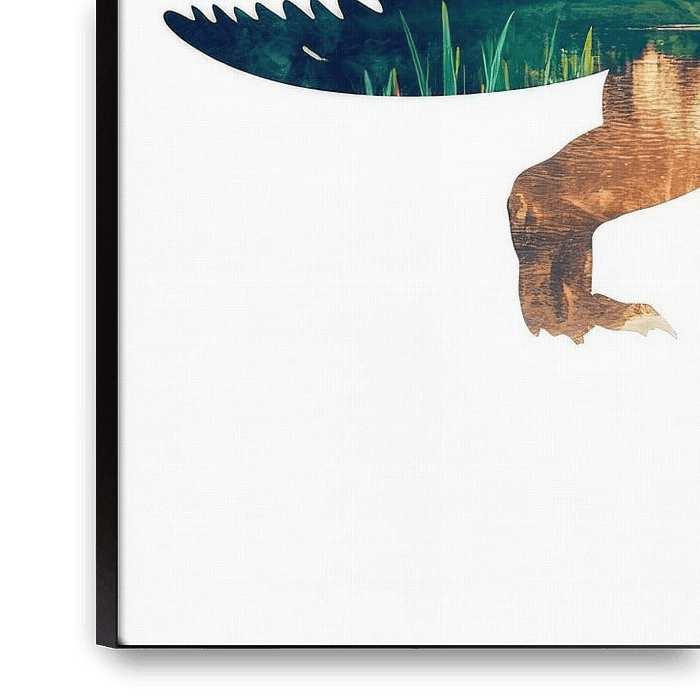 A fascinating creature unfolds in vivid colours, embodying the connection between animal and nature. With its impressive body and the harmonious landscape inside, it looks like a living painting. This work of art brings a creative atmosphere to any living room, where it stimulates the imagination and sparks conversation.