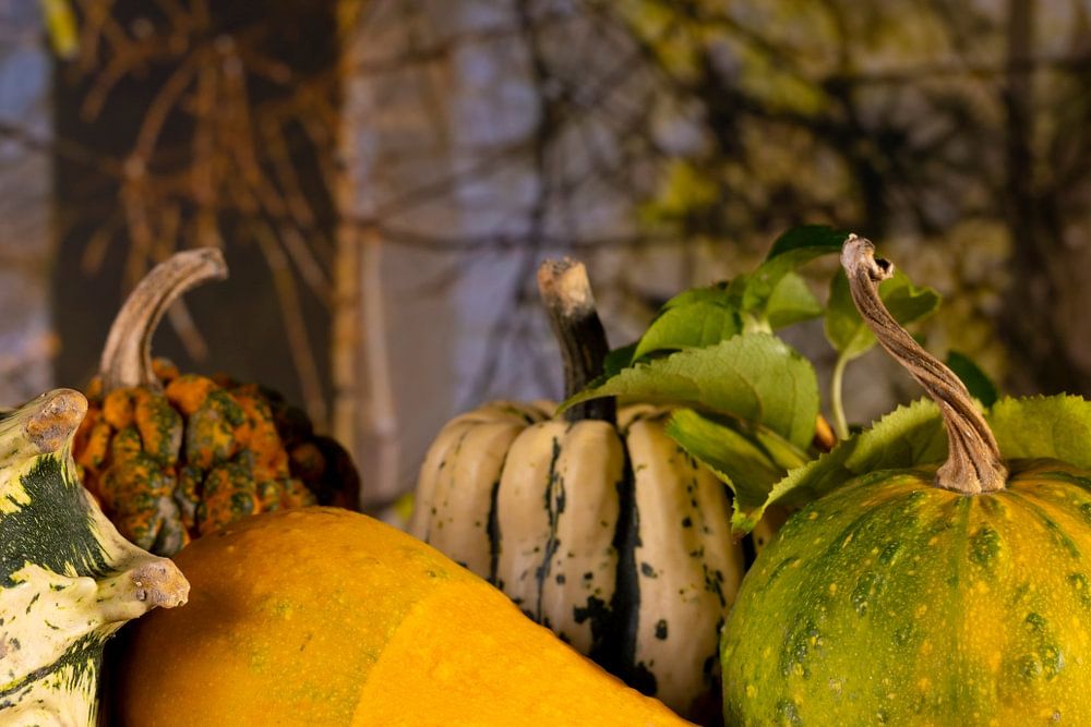 Typical for autumn are the pumpkins, in all shapes and sizes. You see the strangest specimens. You can grow them yourself or buy them at the farmer.