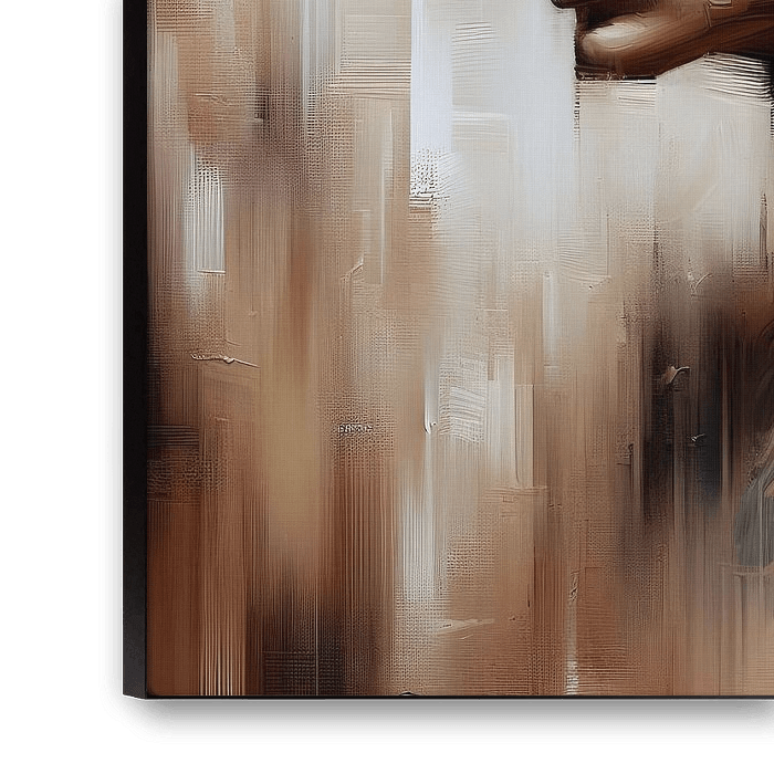 A powerful oil painting that brings to life the intensity and stories of a tattooed woman. Deep brown tones and rough brushstrokes capture the beauty of her tattoos, while her gaze exudes a mix of mystery and determination. Each tattoo on her skin tells a story of strength, struggle and self-expression. This work invites you to explore her world, a story engraved in ink and time.