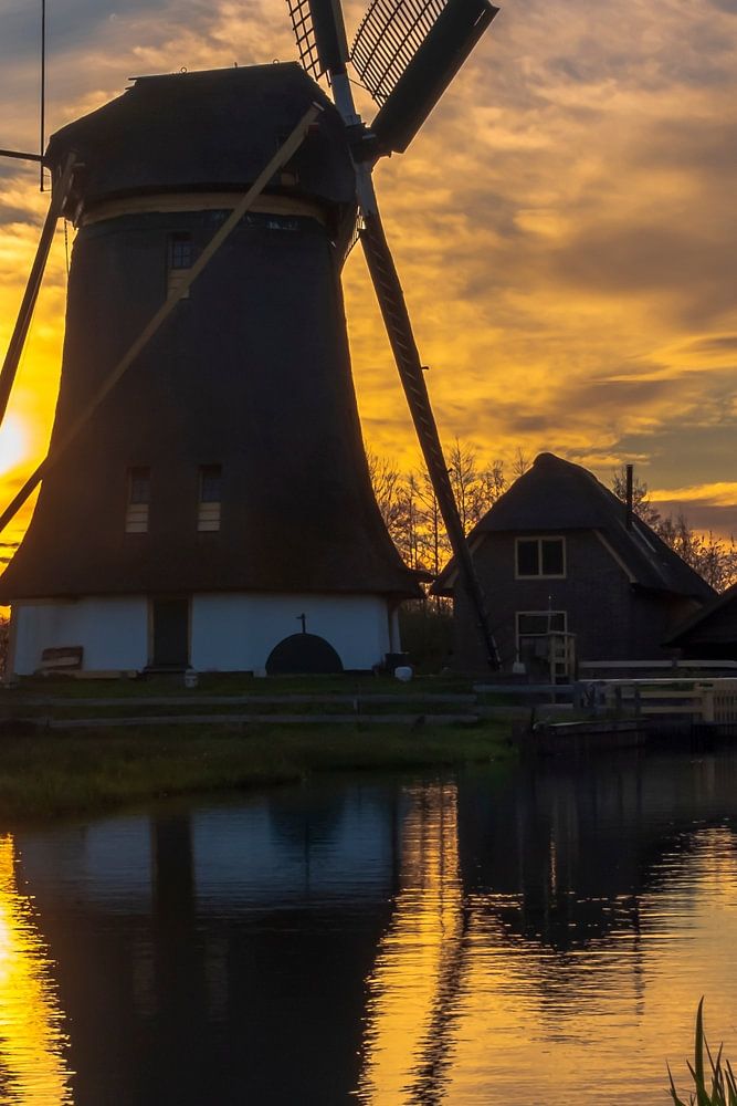 Buy this landscape artwork Pure Holland. A mill at sunset. by Gianni Argese on canvas, ArtFrame, poster and wallpaper, printed on demand in high quality.