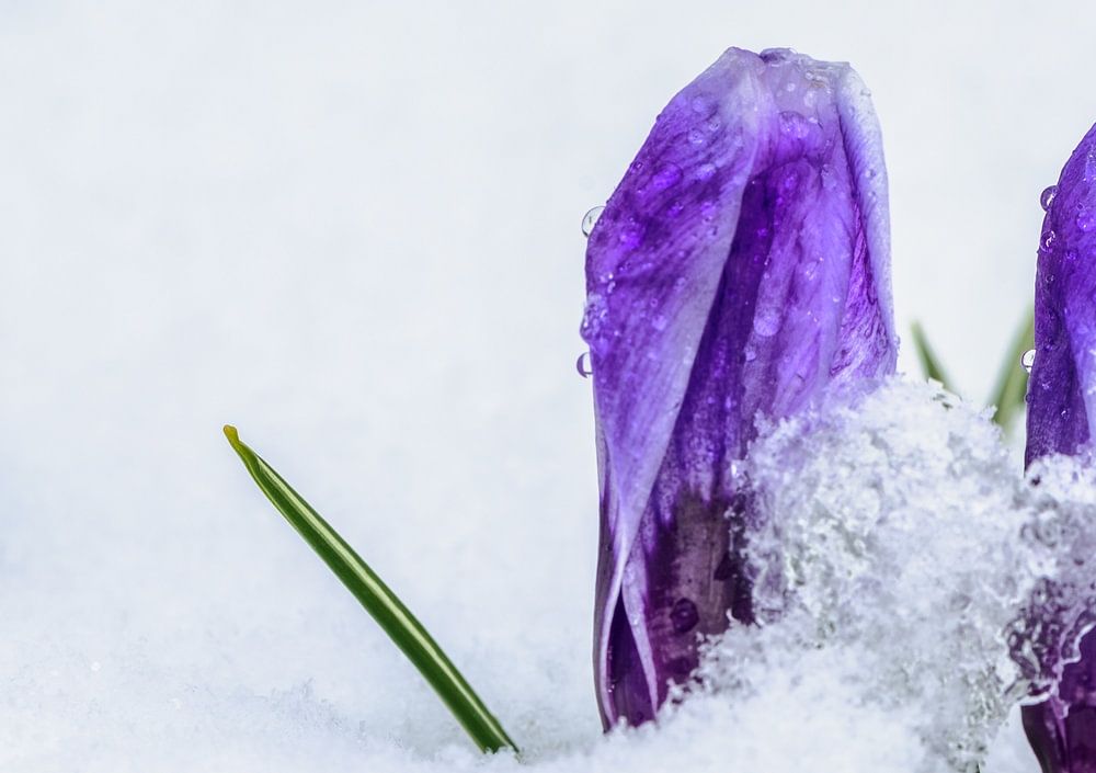 Buy this flower art Purple crocus buds in the snow by ManfredFotos on canvas, ArtFrame, poster and wallpaper, printed on demand in high quality.