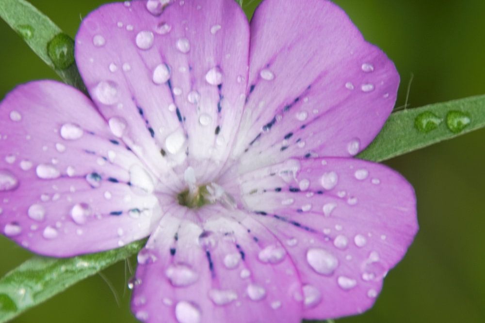 After a rainstorm this beautiful purple flower was photographed. The raindrops are still clearly visible.