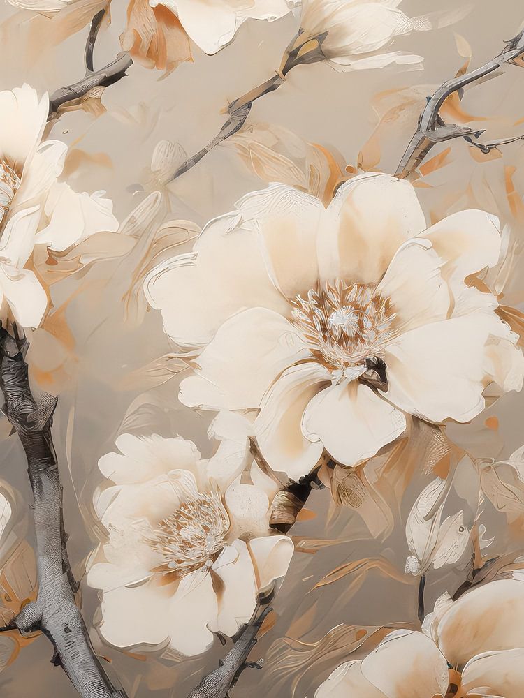 This enchanting still life, called "Calm Floral Splendour", shows a beautiful bouquet in calm and serene colours. The flowers exude a hushed beauty, with each petal and stem carefully arranged. The calm colour palette and harmonious composition create an atmosphere of serene splendour. Immerse yourself in the soothing beauty of this still life and be enchanted by the subtle splendour of the flowers.