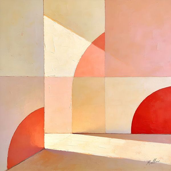 Radiant Planes is a modern abstract artwork that captures the feeling of sunlight resting gently on layered surfaces. Flat geometric planes and soft curved forms create a calm and balanced composition, while warm pastel tones bring a sense of comfort and elegance. A vibrant accent colour adds brightness, making the artwork feel fresh…