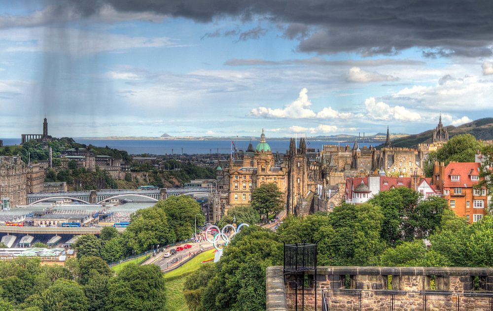 Showers over Edinburgh, Scotland as seen from the walls of the Edinburgh Castle