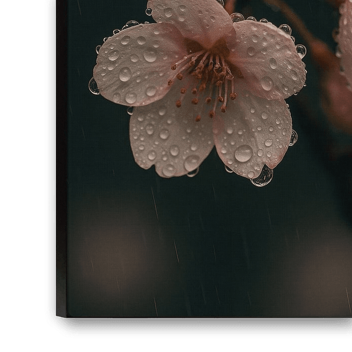 Buy this flower art Rain kiss on cherry blossom - Poetry in Drops by But First Framing on canvas, ArtFrame, poster and wallpaper, printed on demand in high quality.