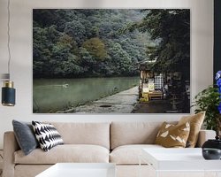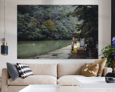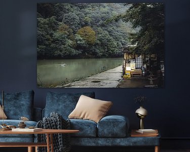 Buy this landscape artwork Rainy day at a restaurant in Arashiyama in Kyoto by Mickéle Godderis on canvas, ArtFrame, poster and wallpaper, printed on demand in high quality.