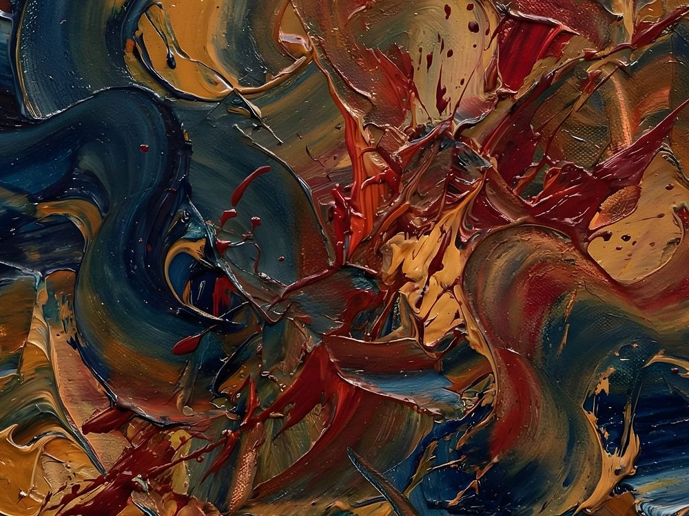 Rough Balance is an abstract oil painting in which powerful movement meets inner peace. Dynamic, twisting brushstrokes in deep blues, warm ochres and intense reds form a layered play of energy and emotion. The rich texture of the oil paint and the visible gestures give the work an almost tangible depth. Without recognisable forms, the…