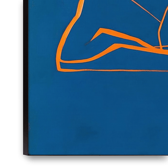 A supple, caressing body in bright orange contrasts elegantly with a deep, calming blue. The minimalist lines create a relaxed atmosphere that invites you to dream. This work of art is perfect for the bedroom, where it promotes calm and inspiration. It radiates a subtle sensuality and becomes an eye-catcher.