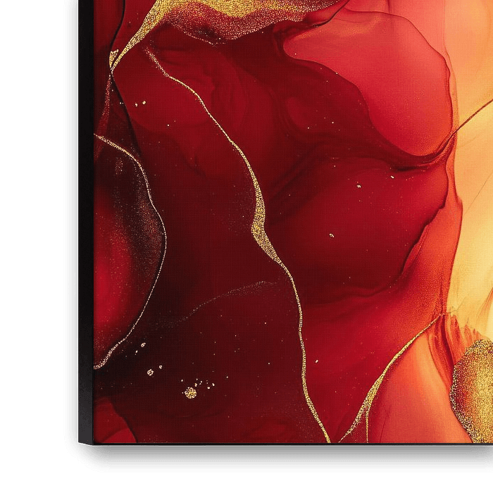 This design exudes elegance and sophistication with its captivating combination of deep red tones and brilliant gold accents. The flowing, undulating lines are reminiscent of a fusion of precious metals and fiery hues, creating a luxurious and dynamic look. Perfect for modern interiors, this abstract artwork adds a touch of warmth and energy to any space, whether placed in a living room, bedroom or office. The mix of colours and textures makes the design look both soothing and energetic, an ideal choice for lovers of contemporary and sophisticated art.
