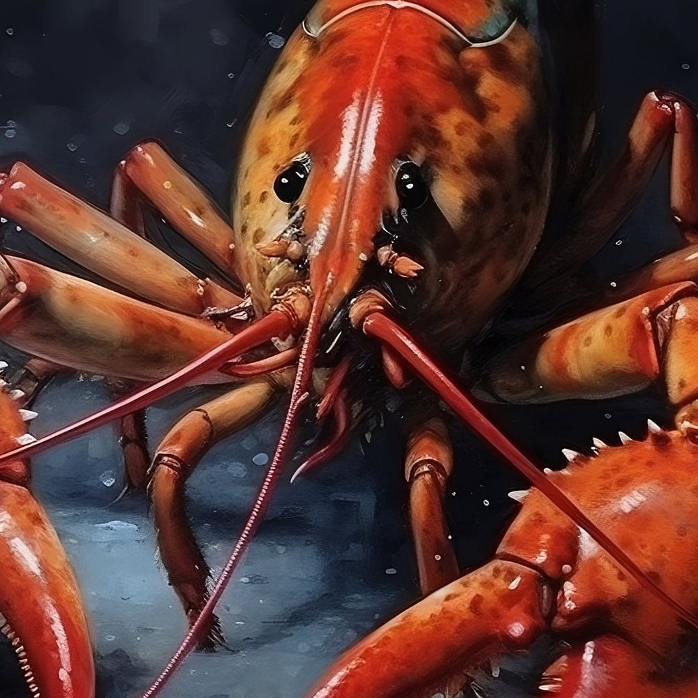 Buy this painting Red lobster, artistic painting by Dunto Venaar as a reproduction on canvas, ArtFrame, poster and wallpaper, printed on demand in high quality.