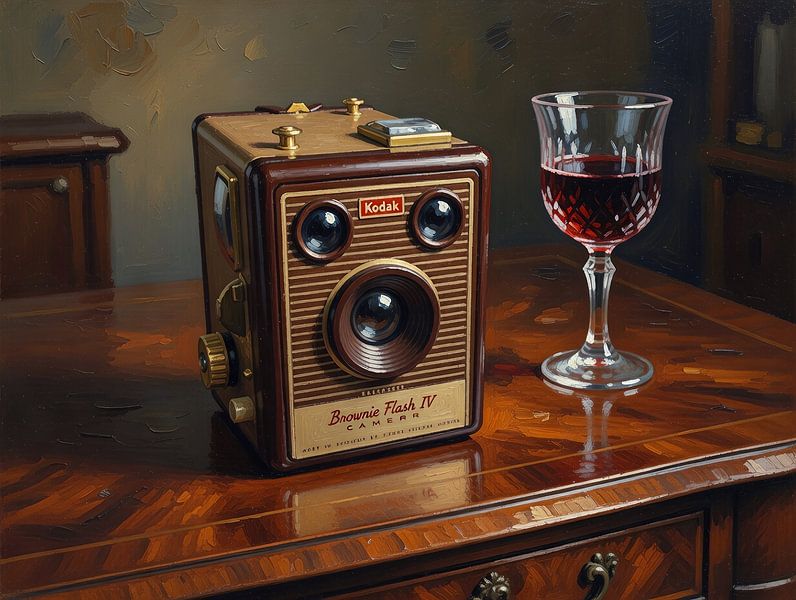 Buy this still life Red wine and box camera by DeVerviersBelgium on canvas, ArtFrame, poster and wallpaper, printed on demand in high quality