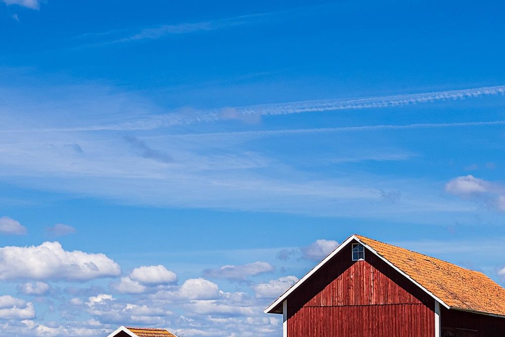 Red wooden houses on the island of Sladö in Sweden by Rico Ködder