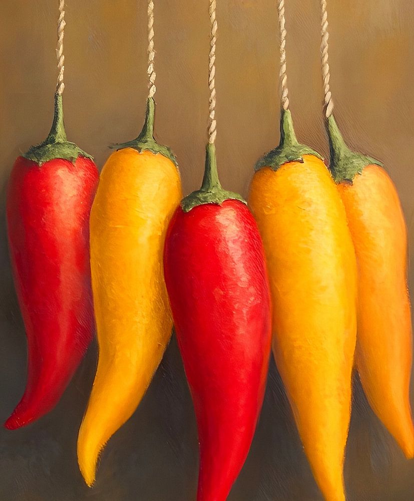 Buy this painting Red & yellow chillies by But First Framing as a reproduction on canvas, ArtFrame, poster and wallpaper, printed on demand in high quality.