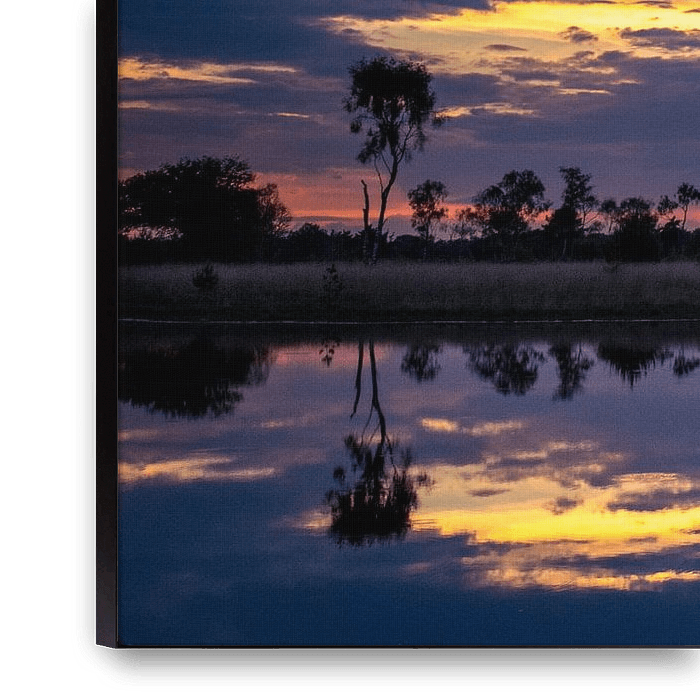 Buy this landscape artwork Reflection at Sunset Kampina by Ronne Vinkx on canvas, ArtFrame, poster and wallpaper, printed on demand in high quality.
