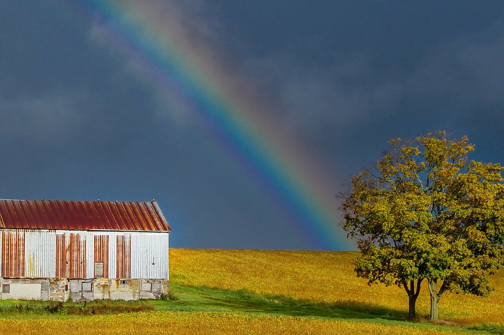Tijdens onze vakantie bij familie in Canada, kwamen we iedere dag langs dit niet zo bijzondere veld met sojabonen. Door donkere regenwolken, een doorkomend avondzonnetje en een mooie regenboog, veranderde dit veld in een prachtig beeld.
