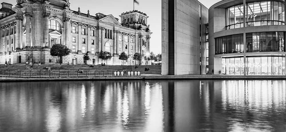 Buy the photo Reichstag building in black and white by Henk Meijer Photography on canvas, ArtFrame, poster and wallpaper, printed on demand in high quality.